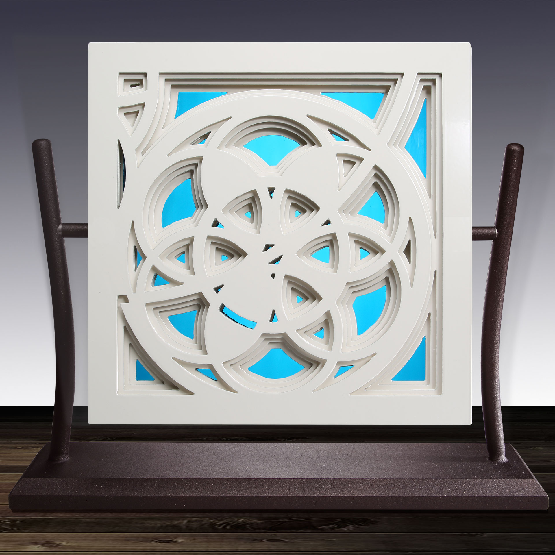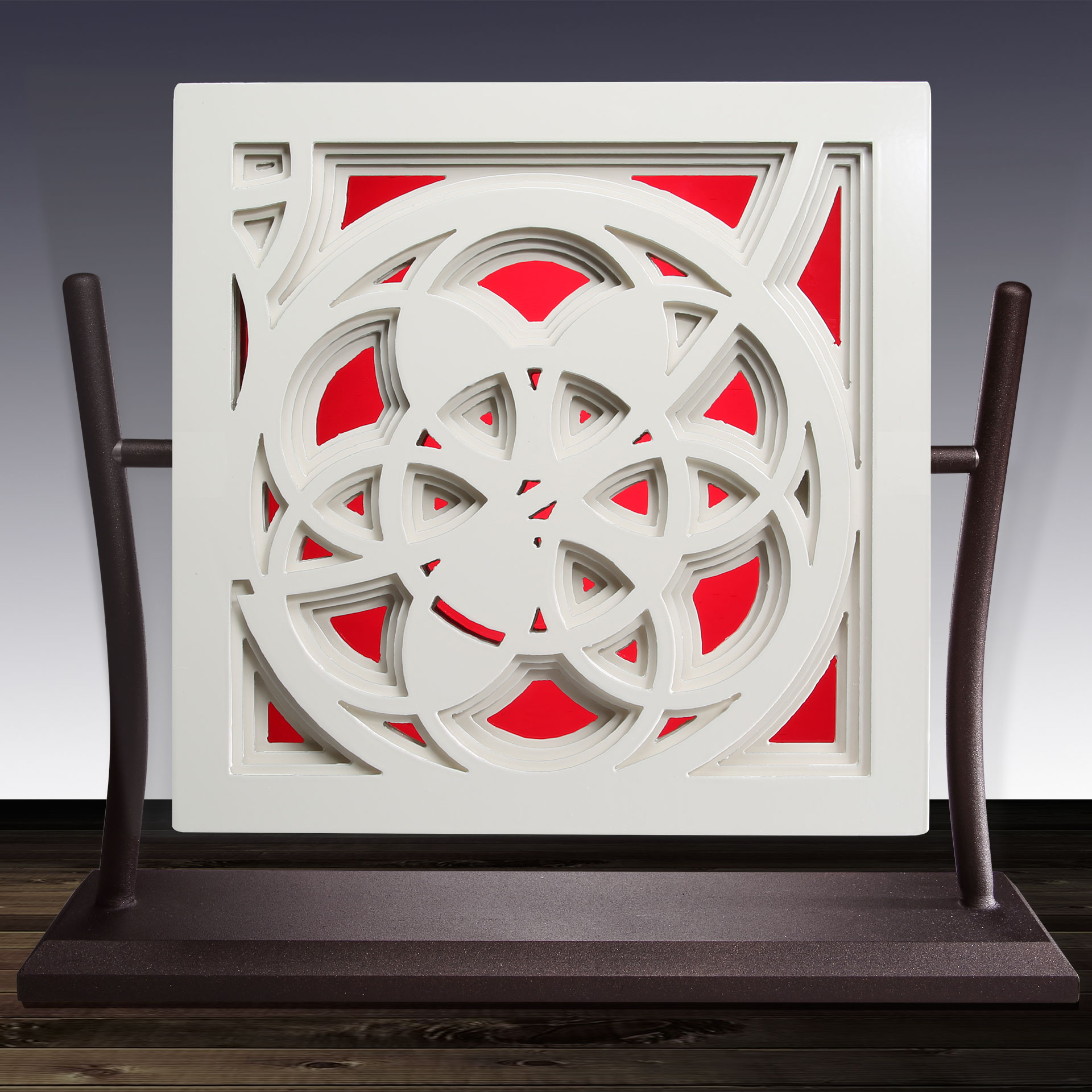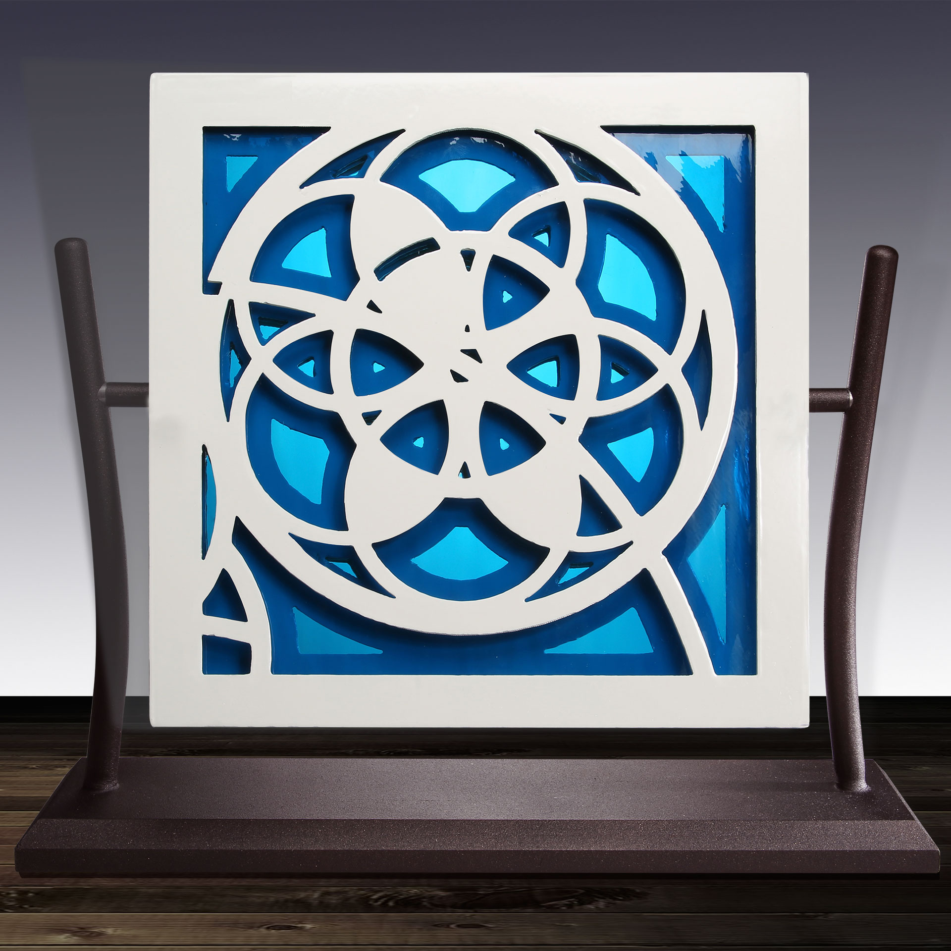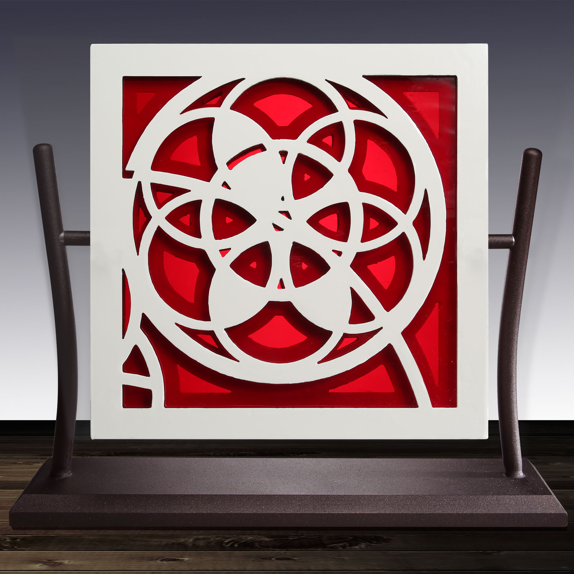 Limited Edition (5) / Steel, white powder coat, art glass with pivoting base ~ 12" x 14"