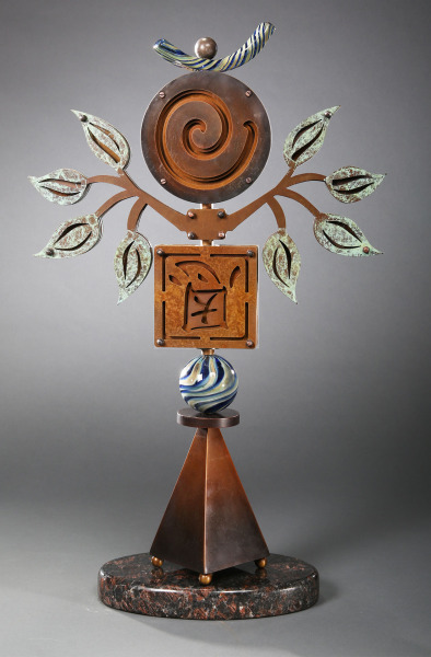 Limited Edition (5) / Bronze, patina, hand-made glass, granite. 360 degree rotation by section ~ 23" x 13.75"