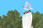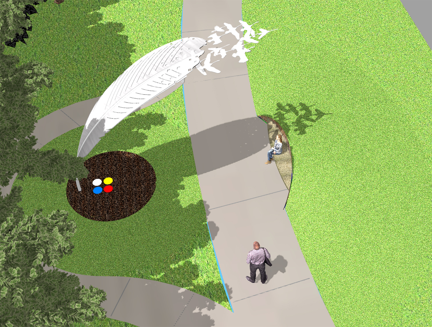 BIRDS OF A FEATHER is Gateway sculpture for the city of Lake Oswego, OR. The lake was once called, "Waluga," an Indian word meaning Wild Swan. We used the swan to symbolize unity and oneness of purpose. It is about acceptance, loyalty, shared aspiration and shared responsibility.