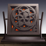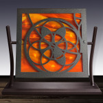 Limited Edition (5) / Steel, bronze powder coat, art glass with pivoting base ~ 12" x 14"